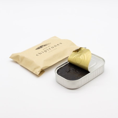 Our baby squid pâté is made in Galicia using products from our estuaries. In this small tin we have combined the flavour of good squid in its ink with the delicate texture of a pâté, so you can enjoy all the flavour of this recipe so typical of our gastronomy in your starters and appetizers. This pâté is perfect for surprising your guests with a gourmet product that, due to its quality, is always the talk of any gathering.