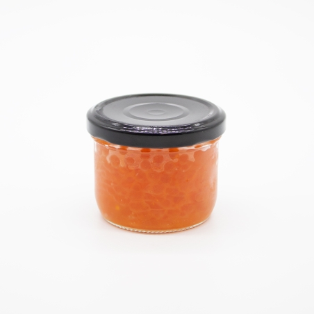 Las huevas de salmón de Mariskito se extraen de salmones de la variedad Keta (oncorhynchus keta). Estas huevas maduran dentro de las hembras durante la época de reproducción hasta que se hacen fuertes. Justo antes del desove se seleccionan cuidadosamente los mejores ejemplares y se retiran las huevas cuando ya están completamente formadas para que tengan el grado de consistencia y el tamaño adecuados (de entre 4 y 7mm de diámetro). Es destacable el alto valor nutricional que tiene un ingrediente tan sencillo como las huevas de salmón o caviar de salmón, ya que son una gran fuente de proteínas, vitaminas y minerales, y contienen una gran cantidad de ácidos grasos Omega-3, lo que las convierte en un alimento con grandes propiedades para la salud cardiovascular.
